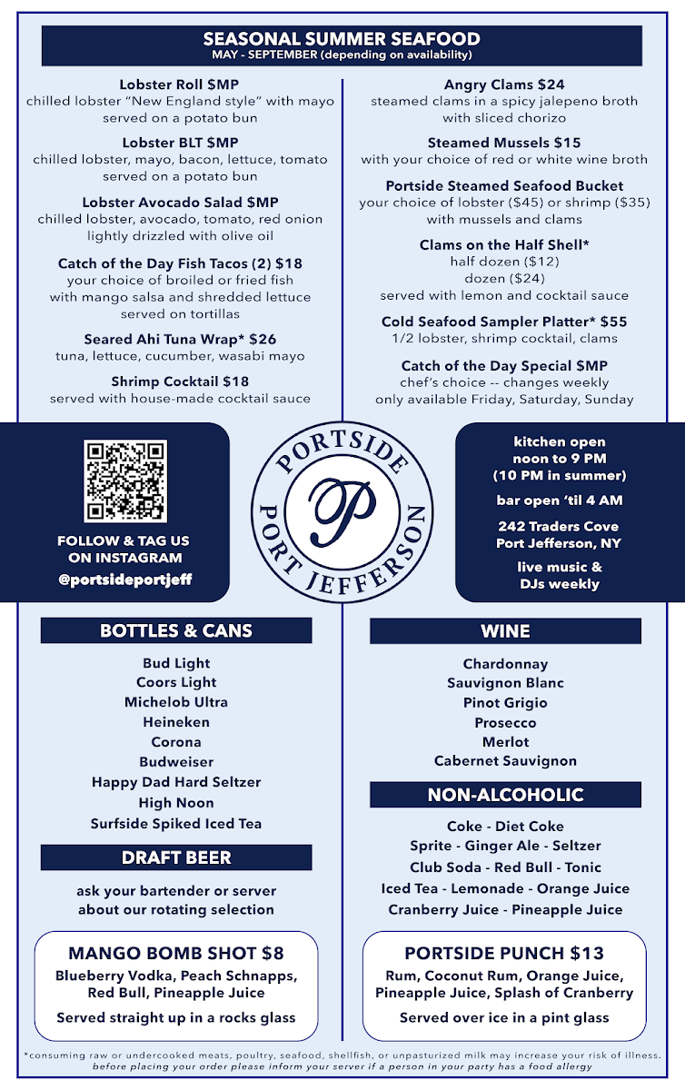 Welcome to Portside Bar & Grill, nestled in the heart of Port Jefferson, NY. This vibrant eatery offers a delightful menu brimming with coastal flavors and hearty favorites, perfect for both casual diners and special occasions. Begin your culinary journey with enticing starters like Fried Calamari or the famous Nachos. For sandwiches, don’t miss the Chicken Avocado Hero or the Fisherman’s Sandwich, showcasing fresh ingredients and bold flavors.